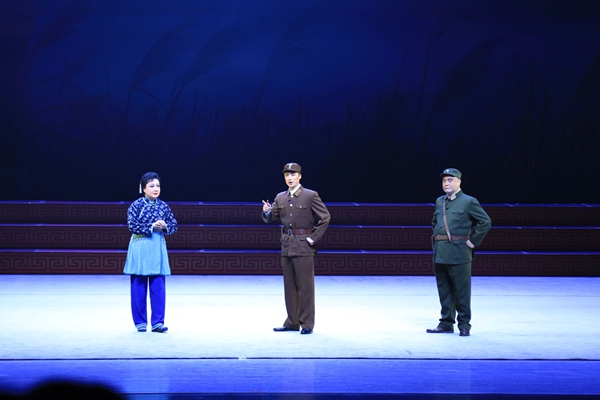 王蓉蓉、藍天、韓巨明表演京劇《沙家浜》選段