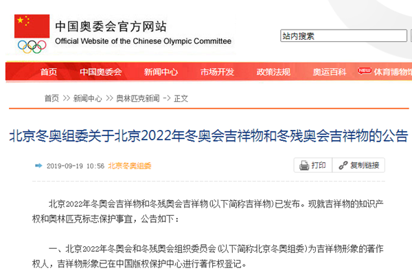 根據《奧林匹克標志保護條例》的規定,北京冬奧組委將冰墩墩形象及名稱提交國家知識產權局進行公告。