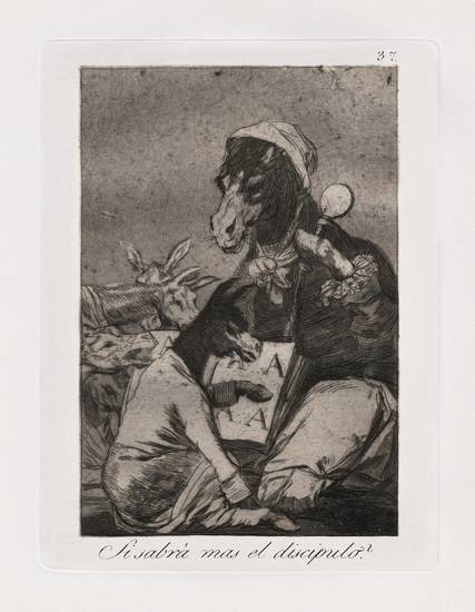 戈雅創作中的自信,是他所有創作思想的基礎。他理性思維的最大體現,不是他的繪畫類作品,而是他的由80幅版畫作品構成的“奇想集”(Capriccio)。這套作品是一部描繪了西班牙社會與風情的畫卷。西班牙有深厚的版畫創作傳統(其中以17世紀的何塞?德?里貝拉為代表),但因為富于探索的渴望,也是為了表達自己的觀點,戈雅在創作中大膽、成功地試驗了一些新的表達與創作手法,“奇想集”中的一些作品,堪稱藝術史上的杰作。