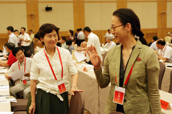7月5日,中國(guó)文聯(lián)第九屆全國(guó)委員會(huì)第三次會(huì)議在京召開。圖為委員相談甚歡。中國(guó)文藝網(wǎng) 孟祥寧 攝