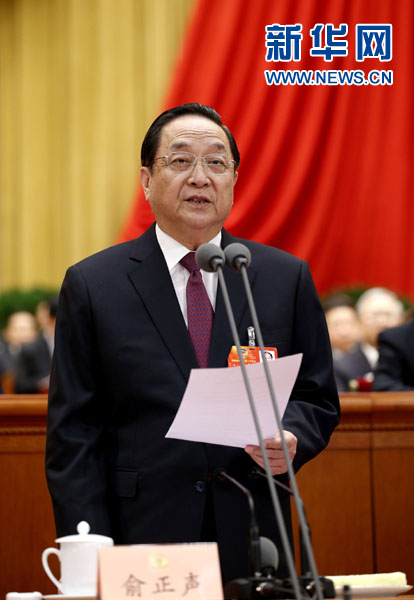 2013年3月3日,中國人民政治協(xié)商會議第十二屆全國委員會第一次會議在北京人民大會堂開幕。俞正聲主持開幕會。新華社記者鞠鵬攝
