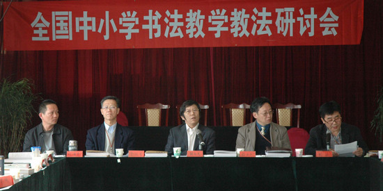 2008年10月26日—27日,由“書法普及:優(yōu)化德育的有效載體和方式”課題組主辦的全國中小學(xué)書法教學(xué)教法研討會在北京昌平隆重召開。中國美術(shù)家協(xié)會分黨組成員、副秘書長、課題組組長張旭光,首都師范大學(xué)教授、博導(dǎo)、副組長葉培貴,中央教育科學(xué)研究所學(xué)術(shù)委員會主任程方平,中央教育科學(xué)研究所研究院齊欣,中央教育科學(xué)研究所副研究員、課題組副組長劉洪,北京書協(xié)理事沈莉,華東師范大學(xué)教授周斌,海燕出版社社長鄭榮,首都師范大學(xué)博士姜棟等課題組專家出席了會議,課題組邀請在研討會征文中獲獎代表參加了會議。