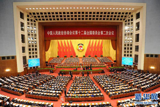 新華社北京3月12日電 中國人民政治協商會議第十二屆全國委員會第二次會議圓滿完成各項議程后,12日上午在人民大會堂閉幕。會議號召,人民政協的各級組織、各參加單位和廣大政協委員,更加緊密地團結在以習近平同志為總書記的中共中央周圍,高舉中國特色社會主義偉大旗幟,以馬克思列寧主義、毛澤東思想、鄧小平理論、“三個代表”重要思想、科學發展觀為指導,全面貫徹落實中共十八大和十八屆二中、三中全會精神,同心同德,扎實工作,為全面建成小康社會、實現中華民族偉大復興的中國夢而奮斗。