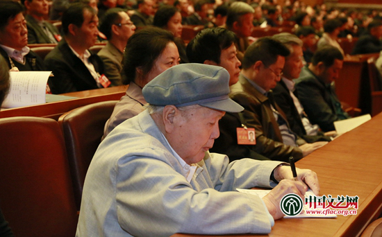 劉文西代表在會場認真記錄 中國文藝網(wǎng) 周春桃 攝