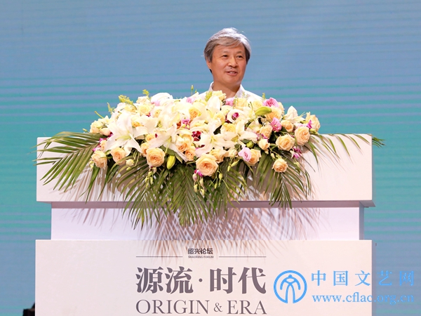 5月25日,“源流·時代”以王羲之為中心的歷代法書與當前書法創作暨紹興論壇開幕,圖為中國文聯黨組書記、副主席李屹在開幕式上致辭。中國文藝網 韓雪竹攝