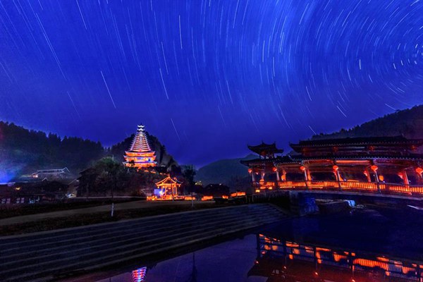 地筍苗寨有128棟吊腳樓,樓房沿山坡建造,層層上升,步步登高,展現出典型的花苗民居特色;青石板路層層疊疊,連接著每家每戶。地筍苗歌的聲部也由低到高,聲音層層疊疊,和這里的環境交相呼應。于是人們就用了這個極度符合地筍苗寨氣質的“鼟”字。
