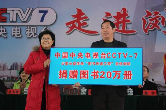 整個(gè)活動(dòng)有圖書捐贈(zèng)儀式、拍攝愛(ài)心圖書室場(chǎng)景、采訪家庭貧困學(xué)生和走訪書香家庭等幾項(xiàng)內(nèi)容。首先是在學(xué)校禮堂內(nèi)進(jìn)行的圖書捐贈(zèng)儀式。儀式由市教育局黃家聲書記主持,出席儀式的有中國(guó)農(nóng)業(yè)電影電視中心黨委副書記鄭學(xué)莉女士和人事處副處長(zhǎng)李立新女士、諾基亞投資有限公司湖南區(qū)域總經(jīng)理張棟先生、CCTV—7《生活567》欄目主編楊蕊女士、瀏陽(yáng)市副市長(zhǎng)張葵紅女士、市委宣傳部副部長(zhǎng)李安、教育局局長(zhǎng)陳耀文先生、沿溪鎮(zhèn)黨委書記湯湘福先生等十幾位領(lǐng)導(dǎo)和嘉賓。參加會(huì)議的有市教育局全體班子成員和各科室負(fù)責(zé)人,沿溪完小全體師生和瀏陽(yáng)市新聞界的朋友們。在儀式上,鄭學(xué)莉女士詳細(xì)介紹了“圖書傳遞工程”的發(fā)起和傳遞情況,陳耀文局長(zhǎng)全面介紹了瀏陽(yáng)的教育情況和讀書工程活動(dòng)。隨后鄭學(xué)莉女士和李立新女士分別授了“20萬(wàn)冊(cè)圖書捐贈(zèng)”的匾牌”和“愛(ài)心圖書室”的匾牌,陳耀文局長(zhǎng)和湯松柏校長(zhǎng)高興地接過(guò)匾牌。最后周祎夢(mèng)同學(xué)代表沿溪完小全體學(xué)生對(duì)上級(jí)領(lǐng)導(dǎo)和社會(huì)各界的愛(ài)心人士表示衷心的感謝,并決心會(huì)加倍愛(ài)護(hù)和認(rèn)真閱讀每一冊(cè)圖書,從小樹立遠(yuǎn)大理想,勤奮學(xué)習(xí),將愛(ài)心傳遞下去,爭(zhēng)取早日成為國(guó)家的棟梁之才。