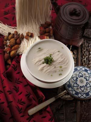 “龍須面”是我國(guó)北方傳統(tǒng)風(fēng)味筵席面點(diǎn)品種之一,是從山東抻面演變出來(lái)的精品,至今已有300多年的歷史。相傳明代御膳房里有位廚師,在立春吃春餅的日子里,做了一種細(xì)如發(fā)絲的面條,宛如龍須,皇帝胃口大開(kāi),邊品嘗,邊贊賞,龍顏大悅,贊不絕口。從此,這種炸制的細(xì)點(diǎn)便成了一種非常時(shí)尚的點(diǎn)心。由于抻面的姿勢(shì),如氣壯山河一般,抻出的面細(xì)如發(fā)絲,猶如交織在一起的龍須,故名龍須面。