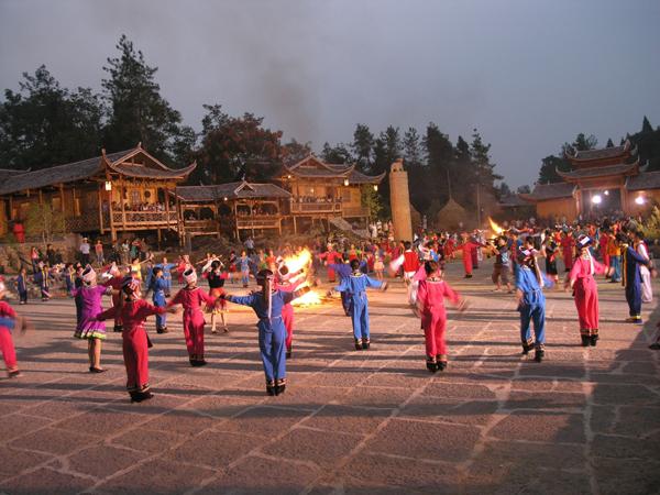 在民歌廣場中心噴水池邊,每晚從7:30到9:30都會迎來土家族擺手舞,男女老幼數百人圍成一個大圈,且歌且舞,徐徐前行,熱鬧之余又給人一種神秘的宗教儀式感。
