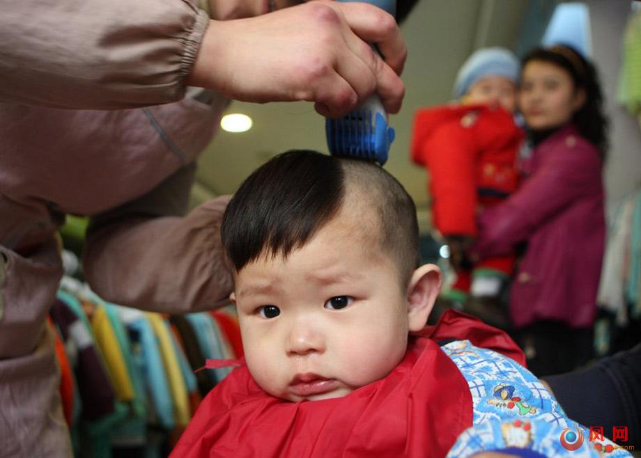 圖為農(nóng)歷二月二小朋友在剃頭