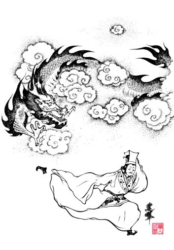 葉公子高好龍,鉤以寫龍,鑿以寫龍,屋室雕文以寫龍。于是天龍聞而下之,窺頭于牖,施尾于堂。 葉公見之,棄而還走,失其魂魄,五色無主。是葉公非好龍也,好夫似龍而非龍者也。(此文選自【漢】劉向《新序·雜事五》)