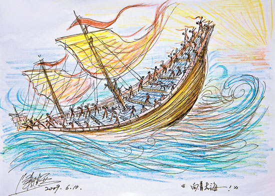 圖為陳維亞所作廣州亞運會廣場演出創(chuàng)意手稿“向著大海”。