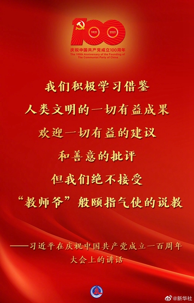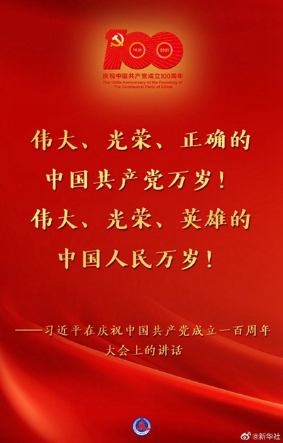 習近平在慶祝中國共產黨成立一百周年大會上的講話金句