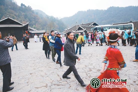 2014年11月,文藝志愿者在湖北省恩施土家族苗族自治州來(lái)鳳縣與土家族群眾聯(lián)歡