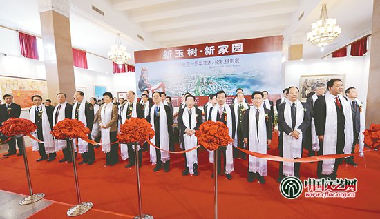 玉樹地震一周年美術書法攝影展在北京軍事博物館開幕