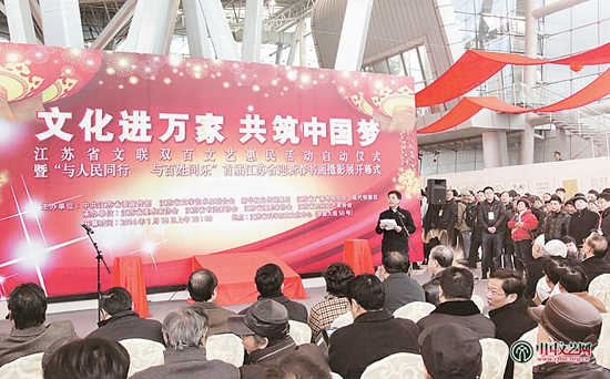 2014年1月18日,“文化進萬家 共筑中國夢”江蘇省文聯(lián)文藝惠民活動啟動儀式暨“與人民同行 與百姓同樂”首屆江蘇省迎新春書畫攝影展在省文聯(lián)舉行