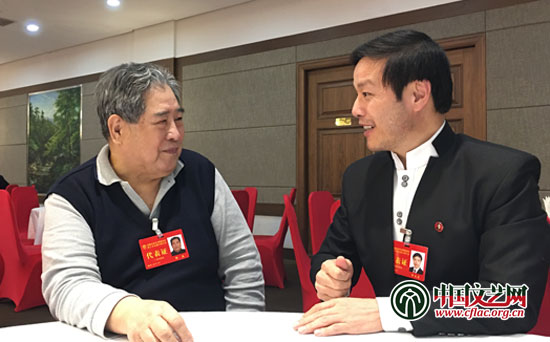 第十次全國文代會上是共商文藝繁榮發展大計的盛會,也是藝術家老友新朋相聚相交,相互切磋技藝的盛會。代表們交流到興奮處,張口成曲,揚手成舞,處處是藝。第十次全國文代會代表、河南省劇協副主席、省豫劇院三團團長賈文龍在餐廳見到第十次全國文代會代表、珠江電影集團導演、著名電影藝術家張良,想起張良所塑造經典英雄電影形象董存瑞對他的影響,走過去坐在張良身邊暢談起學藝經歷,忍不住對著“董存瑞”獻唱經典豫劇《朝陽溝》里面栓寶勸銀環的唱段:咱兩個在學校整整三年,相處之中無話不談,我難忘你叫我看董存瑞,你記得我叫你看劉胡蘭,董存瑞為人民粉身碎骨,劉胡蘭為祖國熱血流干,咱看了一遍又一遍,你藍筆點來我紅筆圈,我也曾感動得流過眼淚,你也曾寫詩詞貼在床邊,咱倆個抱定了共同志愿,要決心做一個有志青年……