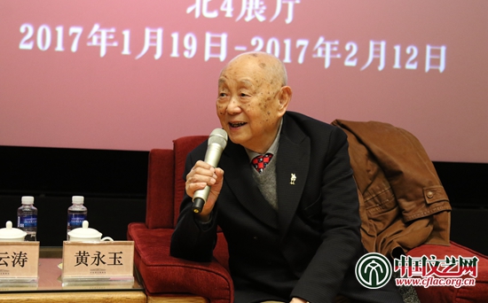 “十二個十二個月——黃永玉生肖畫展”媒體說明會現(xiàn)場黃永玉答記者問 中國文藝網(wǎng)記者 周娜攝