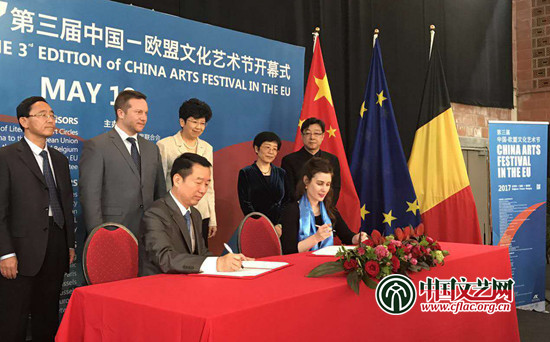 2017年5月18日晚,第三屆中國-歐盟文化藝術節開幕式在歐盟總部布魯塞爾圣米歇爾劇院舉行。中國文學藝術界聯合會副主席趙實、中國駐歐盟使團大使楊燕怡、歐中“一帶一路”文化旅游發展委員會主席及歐洲議員伊什特萬·威伊海依、中國-歐盟文化藝術節組委會主席朱莉·帕特森等200多位歐盟官員、歐盟國家文藝界人士應邀出席開幕酒會,期間見證了中國電影家協會與中國-歐盟文化藝術節組委會簽署的中歐電影合作備忘錄。開幕式上趙實、楊燕怡、伊什特萬·威伊海依致辭,趙實宣布藝術節開幕。開幕式和演出現場氣氛熱烈,1200座的劇場全部爆滿。