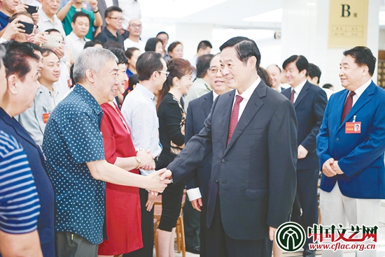 7月19日,中國曲藝家協(xié)會第八次全國代表大會在京開幕。中共中央政治局委員、中央書記處書記、中宣部部長劉奇葆親切接見與會代表 新華社記者 張 領(lǐng) 攝