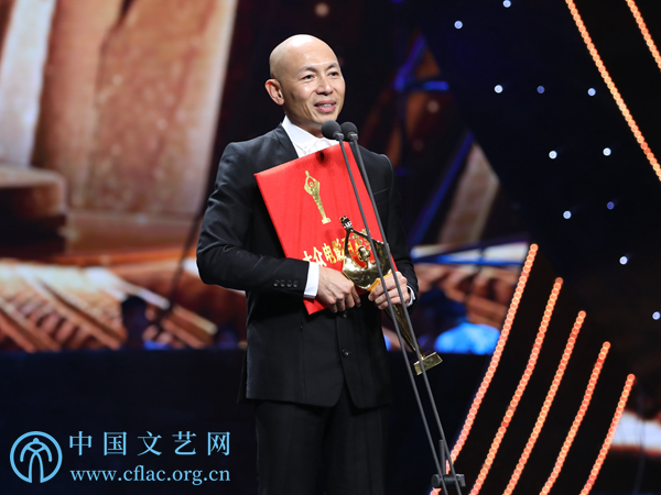 11月10日,第34屆大眾電影百花獎頒獎典禮暨第27屆中國金雞百花電影節閉幕式在廣東佛山舉行。圖為最佳導演獎獲得者林超賢發表獲獎感言。中國文藝網 韓雪竹攝
