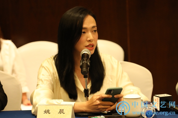 11月21日,中國電影家協(xié)會學(xué)習(xí)貫徹習(xí)近平總書記關(guān)于推進電影事業(yè)發(fā)展重要指示精神座談會在福建廈門召開。圖為青年演員姚晨發(fā)言。中國文藝網(wǎng) 韓雪竹 攝