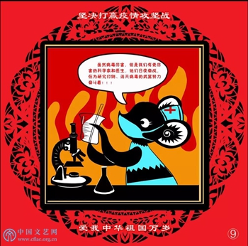《堅決打贏疫情攻堅戰 愛我中華祖國萬歲》(民間剪紙連環畫)岳紅霞