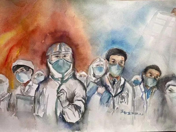 莊紅偉 國畫《最美逆行·白衣鐵軍》