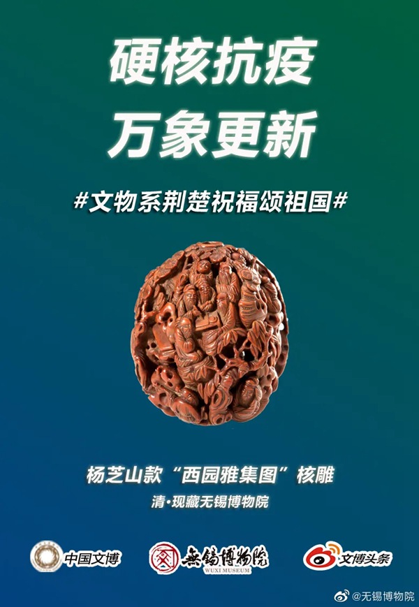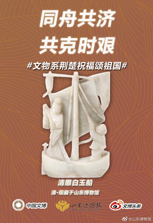 馬踏飛燕馳援武漢的“銅奔馬”、同舟共濟的“清雕白玉船”,戰疫伏魔的“青銅寶劍”,鼎力相助的“西周大克鼎”......2020年年初,新冠肺炎疫情肆虐全國之際,微博聯合@中國文博 及海內外100多家文博機構組織開展“文物系荊楚 祝福頌祖國”祝福接力活動,各地博物館紛紛拿出鎮館之寶,制作成精美海報,中華瑰寶接力鼓勁,用五千年文化底蘊為抗疫行動匯聚精神力量,通過豐富的文物展示傳遞美好的祝福和必勝的信念。