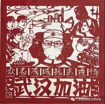 吳紹軍(廣西)剪紙作品 《眾志成城 · 共抗疫情》
