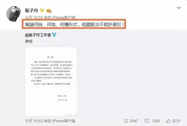甄子丹堅定地在微博上轉(zhuǎn)發(fā)