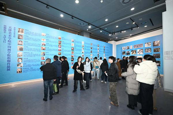 本次展覽以 “崇德尚藝·力學力行”為主題,系統梳理了天津美術學院中國畫學院自專業設立以來歷代教師的創作成果與學術探索。展覽共分為“篳路藍縷·學院基石”“譜寫山河·時代意象”“學術深耕·多元探索”“當代視野·筆墨新境”四個板塊,匯集62位教師的精品力作,涵蓋花鳥、人物、山水、書法等諸多門類,既有前輩大家的經典遺存,也有當代骨干教師的創新探索之作,集中呈現了天美中國畫學科在百年歷程中形成的精神傳統與學術風貌。