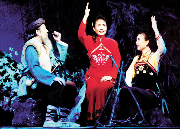王:6場(chǎng)民族歌劇《黨的女兒》是為了慶祝建黨70周年而創(chuàng)作的。由于時(shí)間緊、任務(wù)重,為確保創(chuàng)作的質(zhì)量,調(diào)集了全軍最優(yōu)秀的創(chuàng)作力量,除了我和張卓婭以外,擔(dān)任作曲的還有印青、王錫仁、季承、方天行。當(dāng)時(shí)正值東歐巨變、蘇聯(lián)解體,有人說:“在這種時(shí)候來寫這樣的作品是要倒霉的。”但我們主創(chuàng)人員并沒有動(dòng)搖,在確定主要人物的音樂主題后,以飽滿的政治熱情,以3天完成一場(chǎng)戲的速度,18天完成了全劇的文本和音樂創(chuàng)作,這在歌劇創(chuàng)作史上是空前的。