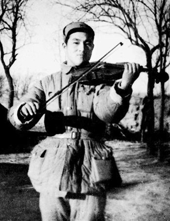1948年,呂其明在華東軍區為戰士們演奏音樂