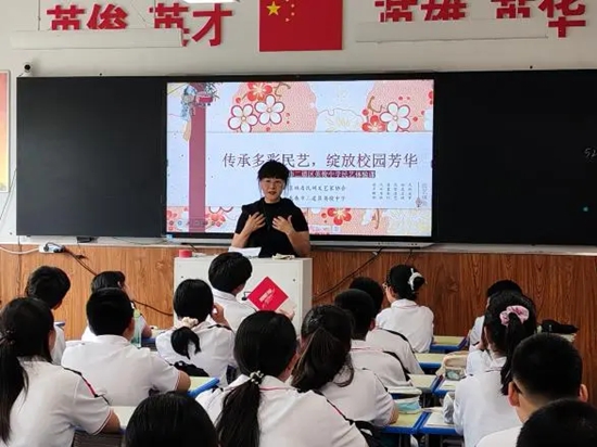 6月12日,由吉林省民間文藝家協(xié)會主辦、長春市二道區(qū)英俊中學(xué)承辦的“傳承多彩民藝 綻放校園芳華”民藝體驗(yàn)課在英俊中學(xué)開講。來自吉林省民協(xié)的民間文藝志愿者們走進(jìn)七年級的教室,通過生動活潑的課程,讓同學(xué)們感知傳統(tǒng)文化的魅力。