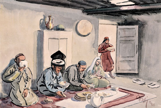 維族用餐(水彩畫(huà)) 一九四六年 韓樂(lè)然