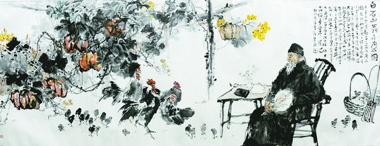 《白石山翁與南瓜圖》 200×600cm 孫曉東