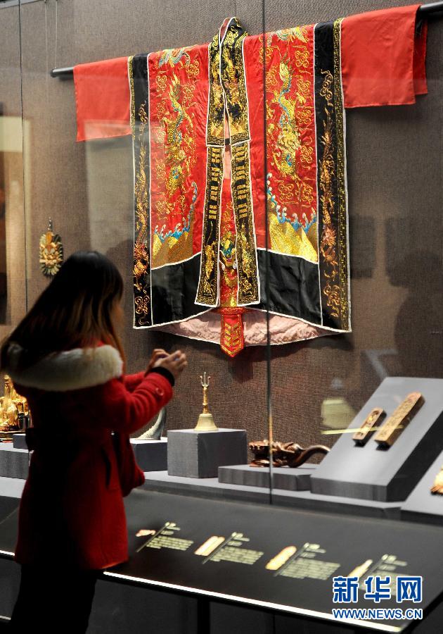 ??? 12月28日,觀眾在首都博物館觀看展覽。當(dāng)日,臺(tái)北世界宗教博物館宗教藝術(shù)文化展在首都博物館開(kāi)展。展覽分為兩部分,第一部分以影片、互動(dòng)地圖等多媒體技術(shù)介紹了宗教的起源、世界宗教的分布等基本信息;第二部分則通過(guò)宗教藝術(shù)品、文字、多媒體等介紹了佛教、基督教、伊斯蘭教、道教等宗教的特點(diǎn)、內(nèi)涵和核心價(jià)值。展覽展出的104組(件)文物均為臺(tái)北世界宗教博物館的館藏精品。(新華社記者 羅曉光 攝)