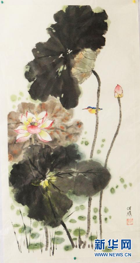 ??? 這是汪鐫畫作《荷》(12月28日攝)。12月28日,北京青年女畫家汪鐫個人畫展在北京城外城潤京會所舉行,展出約50幅作品。汪鐫中國畫畫風以傳統為主,善于小寫意,秀美清新,意味雋永。(新華社發 張燕輝攝)