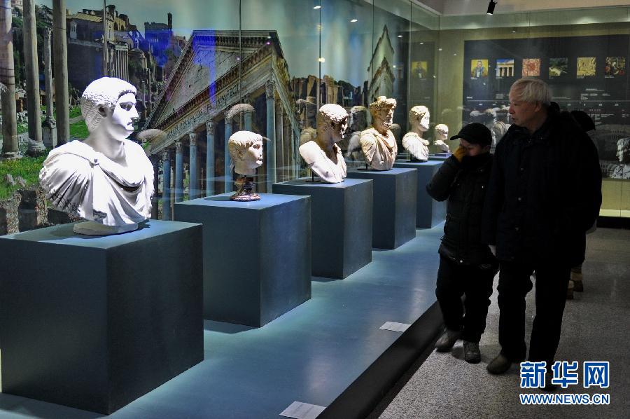 ?? 1月20日,市民在欣賞展出的陶器文物。當(dāng)日,輝煌時代——羅馬帝國文物特展在吉林省博物院開展。展出的300件文物珍品來自意大利佛羅倫薩國家考古博物館等3家意大利博物館,包括人物雕像、錢幣、陶器青銅器等,為觀眾展現(xiàn)了一幅輝煌的羅馬帝國歷史畫卷。(新華社記者 張楠 攝)