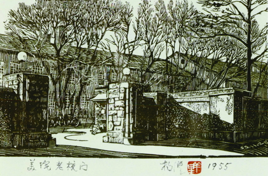 60年過去了,學校早已遷到城外寬敞的新校區(qū),老校址拆遷,變成協(xié)和醫(yī)院的新病房樓。我刻的《美院老校門》變成校友回憶母校的紀念品,上世紀80年代中央美術學院美術館收藏了一幅并幾次展出。李樹聲先生收到一幅復制品(木板有損)后感慨地說:“在里邊住了46年!太有感情了。”李可染先生、師母鄒佩珠先生見到后也說:“老美院,太熟悉,感情很深??!”老校園里有徐悲鴻、吳作人老院長的身影,有齊白石老人上課的痕跡,有李可染、李苦禪、李樺、古元等老一代宗師授課的回音。