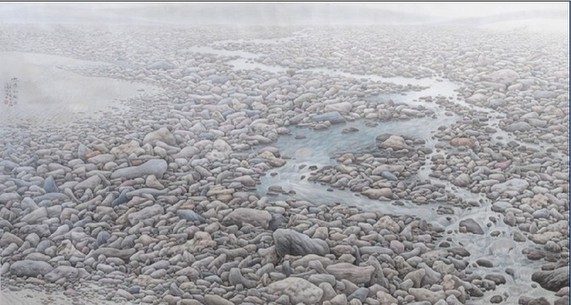 ????“清泉石上流——李留海畫展”24日在北京民族文化宮舉行。以石入畫是中國(guó)畫的一個(gè)傳統(tǒng),但多少代畫家的興趣只在巉巖怪石,對(duì)河灘上的卵石不屑一顧。河洛之子李留海創(chuàng)作的石水畫,在中國(guó)畫歷史上留下了新的一頁,普通的河卵石因他的創(chuàng)作而被賦與了美麗的藝術(shù)生命。李留海另一令觀眾駐足的作品是組畫《馬街書會(huì)》,眾多神情畢肖的普通百姓、宏大的場(chǎng)面、頗具匠心的構(gòu)圖,洋溢著一股撲面而來的現(xiàn)實(shí)生活氣息。