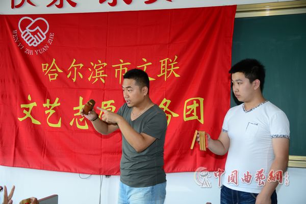 2013年7月9日,哈爾濱市曲藝家協(xié)會的文藝志愿者驅(qū)車近3小時風(fēng)塵仆仆來到通河縣開展文藝志愿活動,不僅將“到人民中去”文藝志愿活動推向高潮,也拉開了哈爾濱文聯(lián)系統(tǒng)“群眾路線教育實(shí)踐活動“的序幕。晚上5點(diǎn),正值通河縣期末考試剛剛結(jié)束,在第四中學(xué)教室,來自全縣熱愛曲藝的中小學(xué)生就把孫大治、王崇宇兩位志愿者圍住。兩位老師從快板的基本知識講起,邊講邊示范,還配合著繞口令,引得現(xiàn)場笑聲陣陣,輔導(dǎo)結(jié)束后,志愿者們向每位同學(xué)贈送了快板,又給同學(xué)們表演了《三打白骨精》等精彩曲藝節(jié)目,滑稽幽默的語言和動作,生動傳神的嗓音和表情對經(jīng)典故事進(jìn)行了演繹,帶給大家與看電視劇完全不同的感覺,讓在場同學(xué)無不感嘆傳統(tǒng)藝術(shù)的魅力。晚上七點(diǎn),在美麗的松花江畔,一場“到人民中去----曲藝走進(jìn)通河”曲藝專場演出正式開始,數(shù)千通河百姓觀看了演出,志愿者表演了由通河作者創(chuàng)作的反映通河先進(jìn)人物的快板書,哈爾濱曲協(xié)主席劉彤不僅為“哈爾濱天鵝文藝大獎”通河的曲藝作者頒獎,還現(xiàn)場表演了精彩相聲,為通河的百姓送去陣陣歡笑。哈爾濱市文聯(lián)、曲協(xié)還命名通河縣為哈爾濱市的“曲藝之鄉(xiāng)”。