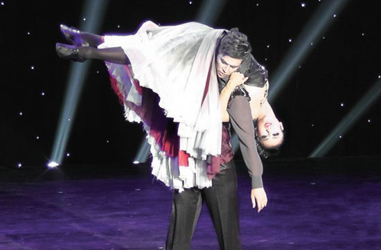 從當(dāng)下國(guó)標(biāo)舞現(xiàn)狀上說(shuō),國(guó)標(biāo)舞藝術(shù)表演舞中的炫技現(xiàn)象仍然十分嚴(yán)重,舞者們并沒(méi)有真正進(jìn)入身體的語(yǔ)言表述。就金獎(jiǎng)作品而言,雖然舞者在之前的競(jìng)技比賽中屢屢?jiàn)Z魁,可是在跳《探戈的變奏》時(shí),能明顯看出舞者身體欠缺“內(nèi)緊外松”的語(yǔ)言狀態(tài),時(shí)常離開(kāi)了人物塑造并有明顯的炫技痕跡,在解讀作品和傳遞情感等方面差強(qiáng)人意,讓我頗感遺憾。但是我們也恰恰從這遺憾中看到了國(guó)標(biāo)舞者顯而易見(jiàn)的舞蹈理念,即提升和完善身體語(yǔ)言藝術(shù)的空間。作為國(guó)標(biāo)舞藝術(shù)表演舞的舞者而言,除了舞蹈激情之外,更需要內(nèi)在的修煉,對(duì)藝術(shù)表演舞作品的深度感悟,才能使自己登上更高的藝術(shù)平臺(tái)。