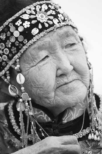 對(duì)于關(guān)扣妮來(lái)說(shuō),這兩種舞蹈都是她的摯愛(ài),她的舞蹈動(dòng)作沉重有力,具有鮮明的民族特點(diǎn)和民族文化研究?jī)r(jià)值,其中也融入了她坎坷的人生經(jīng)歷。關(guān)扣妮生活在大興安嶺地區(qū)呼瑪縣白銀納民族鄉(xiāng),今年78歲,是鄂倫春族健在的薩滿中最德高望重的一位,是解讀鄂倫春族薩滿文化的重要傳承人,也是鄂倫春人公認(rèn)的民間藝術(shù)家。2007年,關(guān)扣妮被黑龍江省文化廳命名為鄂倫春族薩滿舞與鄂倫春族呂日格仁舞的代表性傳承人,同年6月獲得中國(guó)文聯(lián)和中國(guó)民間文藝家協(xié)會(huì)命名的“中國(guó)民間文化杰出傳承人”榮譽(yù)稱號(hào)。