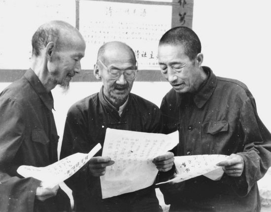 譚光沛(中)與杜青山(右)、黃明德(左)切磋詩(shī)藝 何懷強(qiáng) 攝