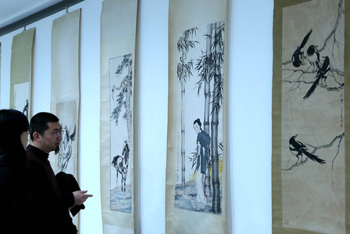 1月17日,參觀者在觀賞徐悲鴻的書畫作品。新華網圖片 李明放 攝