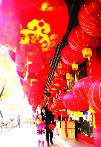 隨著春節的臨近,各種帶有濃烈節慶氣氛的燈籠、春聯、年畫和年糕、春餅等年貨,已在全國各地熱銷。圖為群眾在江西省龍南縣紅旗大道一家飾品店選購大紅燈籠。本報記者 劉新武攝
