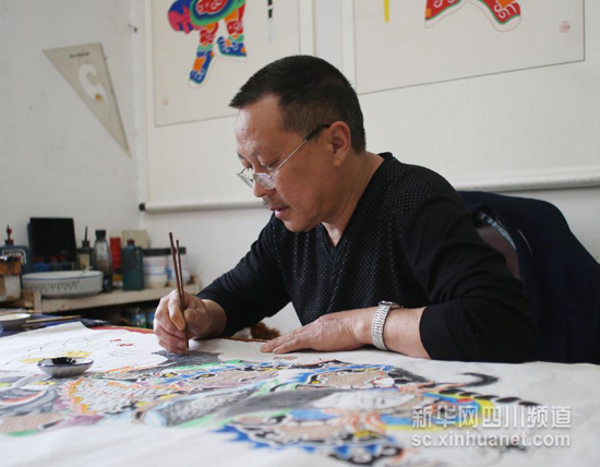 5月9日,藝人在綿竹市孝德鎮年畫村繪制熱賣年畫《趙公鎮宅》。在“5·12”汶川特大地震中,作為中國四大年畫之一的綿竹年畫受到沉重打擊。震后5年來,當地政府大力培育和發展年畫產業,通過與援建城市蘇州的大力合作,促進綿竹年畫產業和蘇州桃花塢年畫的產業對接,推動了綿竹年畫的產品創新,擴大了生產規模,并構建起自有營銷網絡體系。目前,當地從事年畫產業的專業藝人有150多名,年畫家庭作坊創作者有900多名,出自年畫村的年畫系列產品多達上百個,產品遠銷50多個國家和地區,年銷售收入達2000萬元以上,年畫從業人員年人均創收達2萬余元。新華社記者 王申