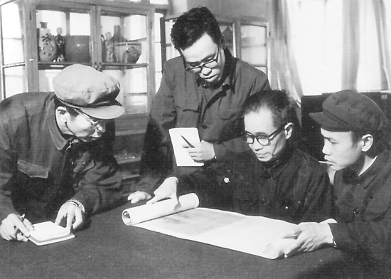 1978年10月,徐邦達(dá)與學(xué)生們?cè)谇鄭u博物館鑒定書(shū)畫(huà)。自左至右:楊臣彬、肖燕翼、徐邦達(dá)、楊新